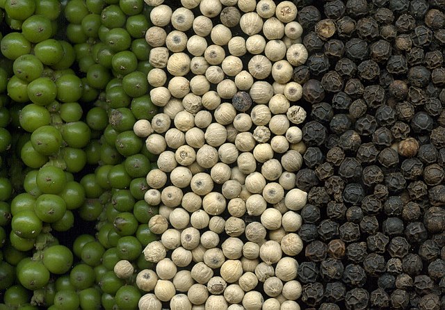 | Foto „Grüner, weißer und schwarzer Pfeffer" von Rainer Zenz via Wikimedia Commons |